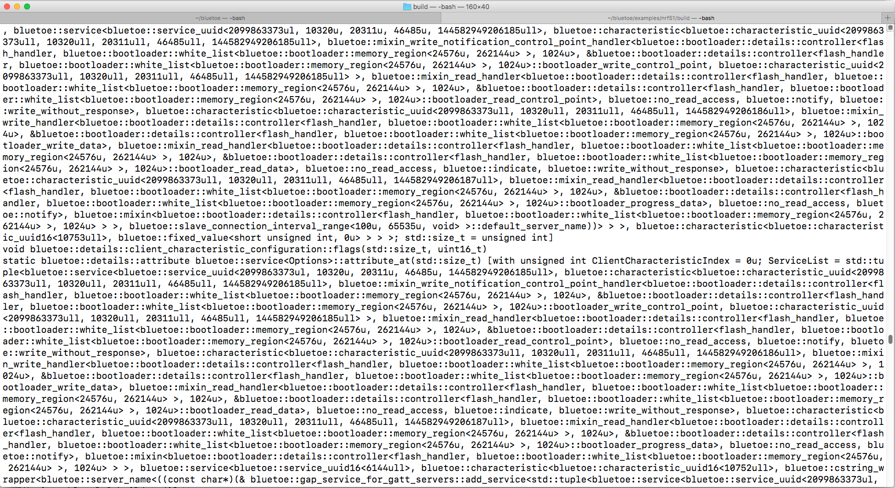 To illustrate the problem with assert() on embedded hardware, I've tried to collect some numbers. I've used a small example, written in C++, that makes heavy use of modern C++ and implements a Bluetooth LE Service for firmware updates.